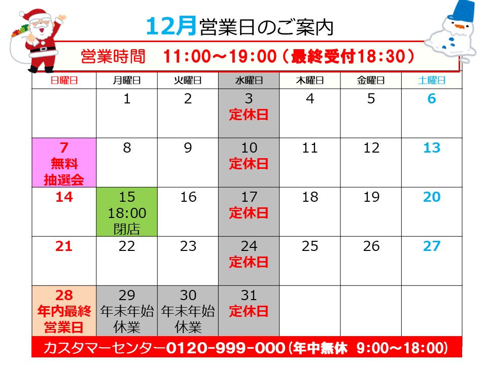 12月のお知らせ