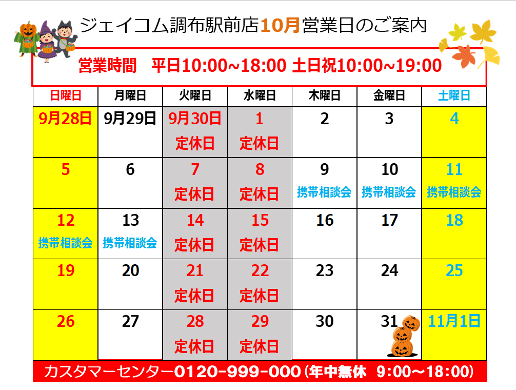 10月のお知らせ
