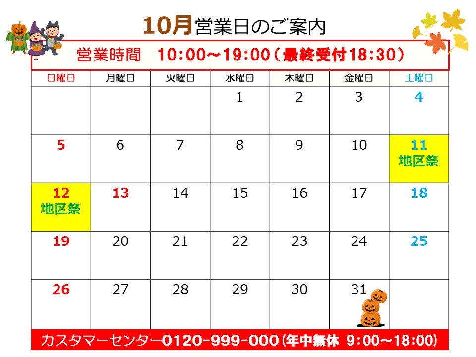 10月のお知らせ