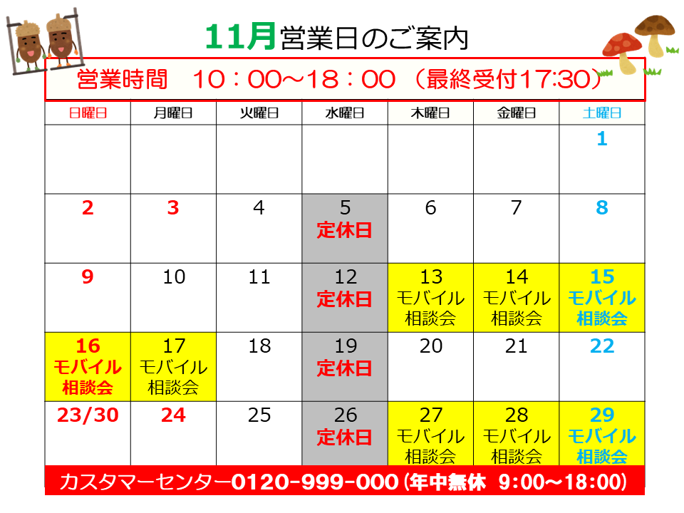 11月のお知らせ